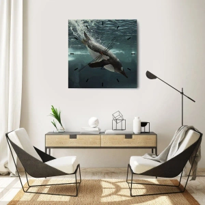 Wanduhr - Glasuhr - Ein Pinguin taucht in die Tiefen des eisigen Wassers - 30x30cm - Willkommen in meiner Welt - Moderne Wanddekoration für Wohnzimmer und Schlafzimmer ARTTOR