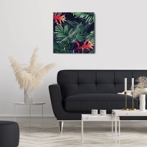 Wanduhr - Glasuhr - Tropische Blätter und Blüten auf dunklem Hintergrund - 30x30cm - Im Grünen in Flammen gehen - Moderne Wanddekoration für Wohnzimmer und Schlafzimmer ARTTOR