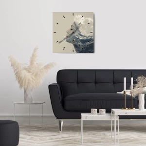 Wanduhr - Glasuhr - Das Gesicht einer Frau, verwoben mit einer Berglandschaft - 30x30cm - Die Schönheit der Elemente der Natur - Moderne Wanddekoration für Wohnzimmer, Küche und Schlafzimmer ARTTOR