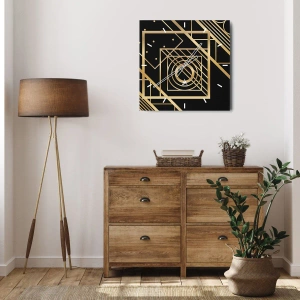 Wanduhr - Glasuhr - Goldene geometrische Muster auf schwarzem Hintergrund - 30x30cm - Goldene Geometrie - Moderne Wanddekoration für Wohnzimmer und Schlafzimmer ARTTOR