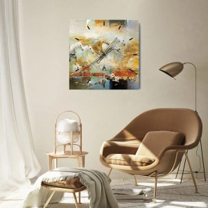 Wanduhr - Glasuhr - Künstlerische Pferde in einer dynamischen, farbenfrohen Umgebung - 30x30cm - Im Galopp durch das Licht - Moderne Wanddekoration für Wohnzimmer und Schlafzimmer ARTTOR