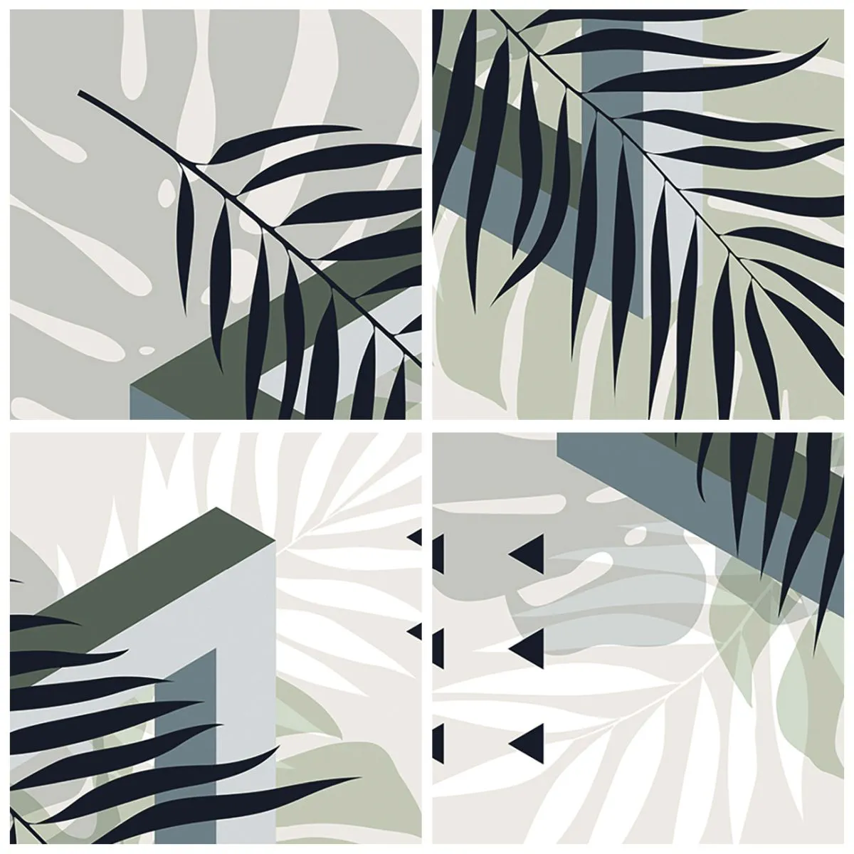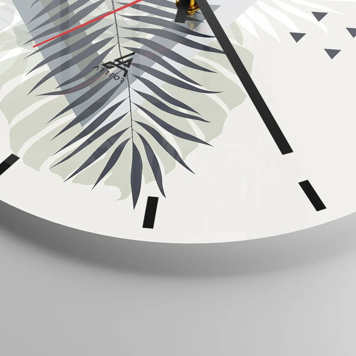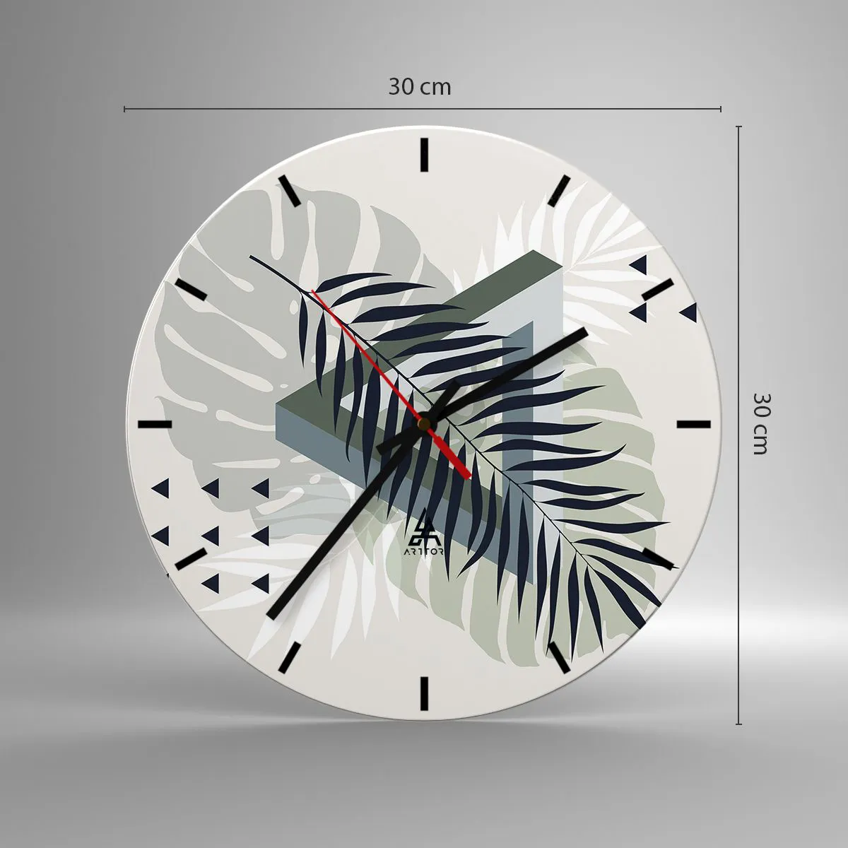 Wanduhr - Glasuhr - Geometrische Komposition mit tropischen Blättern - 30x30cm - Natur und Geometrie – zwei Ordnungen? - Moderne Wanddekoration für Wohnzimmer, Küche und Schlafzimmer ARTTOR
