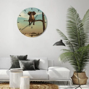 Wanduhr - Glasuhr - Ein Elefant sitzt auf einem Ast und blickt auf eine Wüstenlandschaft - 30x30cm - Neuer Blickwinkel - Moderne Wanddekoration für Wohnzimmer und Schlafzimmer ARTTOR