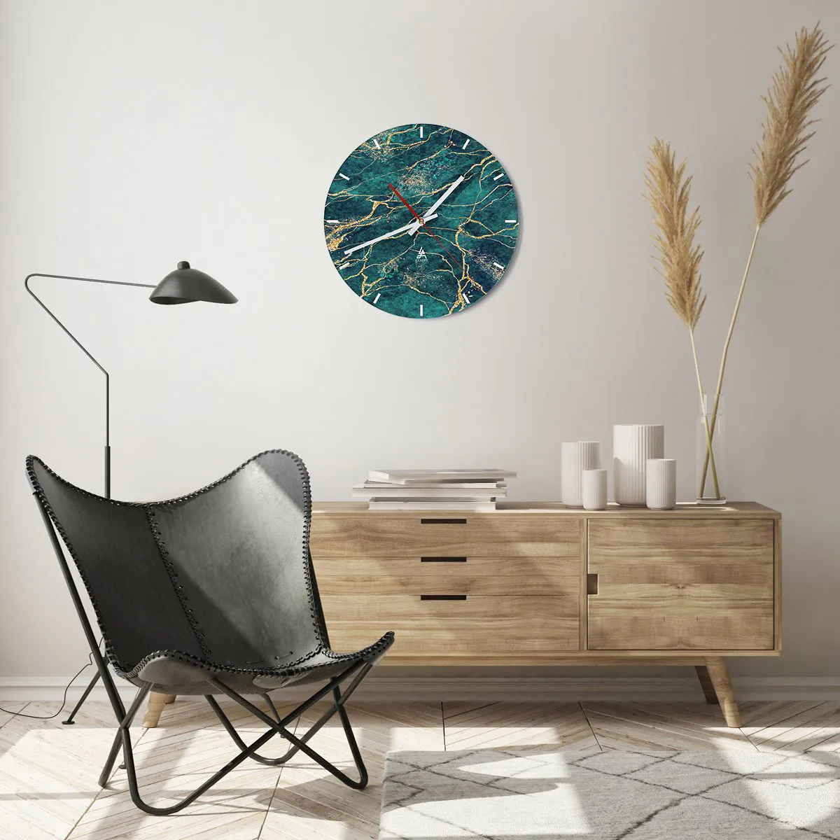 Die Uhr besteht aus robustem 4 mm dickem Glas. Glas bewahrt die natürlichen Farben des Drucks