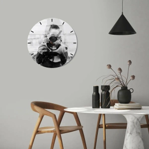 Wanduhr - Glasuhr - Schwarz-Weiß-Doppelbelichtungsporträt eines Fotografen - 30x30cm - Schöpfer und Material - Moderne Wanddekoration für Wohnzimmer und Schlafzimmer ARTTOR
