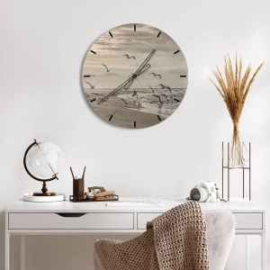 Wanduhr - Glasuhr - Eine Möwe im Flug über einer Küstenlandschaft - 30x30cm - Meeresrauschen, Vogelgesang - Moderne Wanddekoration für Wohnzimmer und Schlafzimmer ARTTOR