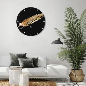 Wanduhr - Glasuhr - Goldene Feder auf schwarzem Hintergrund - 30x30cm - Er hat ein ungewöhnliches Schreibtalent ... - Moderne Wanddekoration für Wohnzimmer und Schlafzimmer ARTTOR