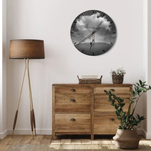 Die Uhr besteht aus 4 mm dickem Sicherheitsglas Glas. Die Herstellungstechnologie der Uhr entspricht der Sicherheitsklasse 2B2 gemäß der Norm PN-EN 12600: 2004, die Stoßfestigkeit garantiert. Die Uhr auf dem Glas ist bereit zu hängen - es hat einen Metallanhänger, einen Anhänger auf der Rückseite der Uhr und einen Schaumstoffabstand, der einen gleichmäßigen Abstand zwischen der Uhr und der Wand reguliert. Die Uhr hat einen geräuschlosen Schwimmmechanismus, der von einer 1,5-V-Batterie betrieben wird - AA-Batterie inbegriffen).
