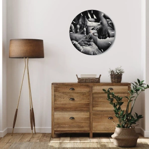 Wanduhr - Glasuhr - Schwarze und weiße Hände verschiedener Generationen - 30x30cm - Mensch sein - Moderne Wanddekoration für Wohnzimmer und Schlafzimmer ARTTOR