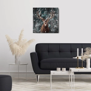 Wanduhr - Glasuhr - Hirsche in einem Winterwald mit fallendem Schnee - 30x30cm - Gekrönter König des Waldes - Moderne Wanddekoration für Wohnzimmer und Schlafzimmer ARTTOR