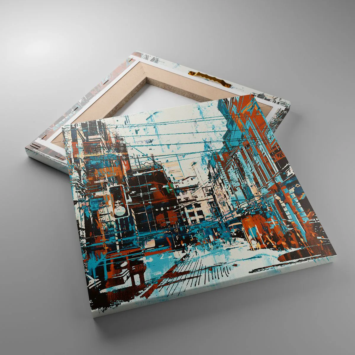 Die Leinwand wird über den Rahmen gespannt. Die Seiten und Kanten werden gedruckt, um das Bild fortzusetzen. Das Bild ist fertig zum Aufhängen an der Wand. Jedes Produkt hat einen am Rahmen befestigten Anhänger und ein Montageset (Schraube + Stift).