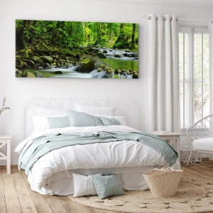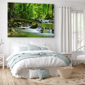 Bild auf Leinwand - Leinwandbild - Ein Bach in einem üppigen tropischen Wald - 70x100cm - Schwimmen Sie in einem Meer aus Grün - Moderne Wanddekoration für Wohnzimmer und Schlafzimmer ARTTOR
