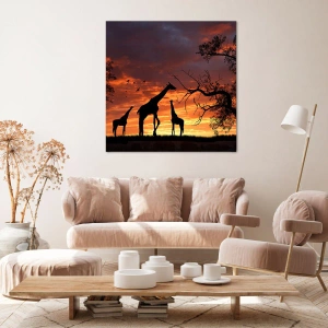 Bild auf Leinwand - Leinwandbild - Silhouetten von Giraffen vor dem Hintergrund des afrikanischen Sonnenuntergangs - 50x70cm - Ein kleines Abendessen mit deinen Liebsten - Moderne Wanddekoration für Wohnzimmer und Schlafzimmer ARTTOR