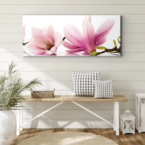 Bild auf Leinwand - Leinwandbild - Zarte rosa Magnolien auf weißem Hintergrund - 50x70cm - Zart wie ein Frühlingswind - Moderne Wanddekoration für Wohnzimmer und Schlafzimmer ARTTOR