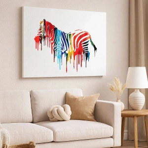 Bild auf Leinwand - Leinwandbild - Abstraktes Zebra in bunten Farben mit Lackeffekt - 70x100cm - Nicht nur schwarz-weiß - Moderne Wanddekoration für Wohnzimmer und Schlafzimmer ARTTOR