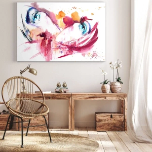 Bild auf Leinwand - Leinwandbild - Ein abstraktes Gesicht mit ausdrucksstarken Augen und roten Akzenten. - 50x70cm - Die Welt gedeiht in der Nähe - Moderne Wanddekoration für Wohnzimmer und Schlafzimmer ARTTOR