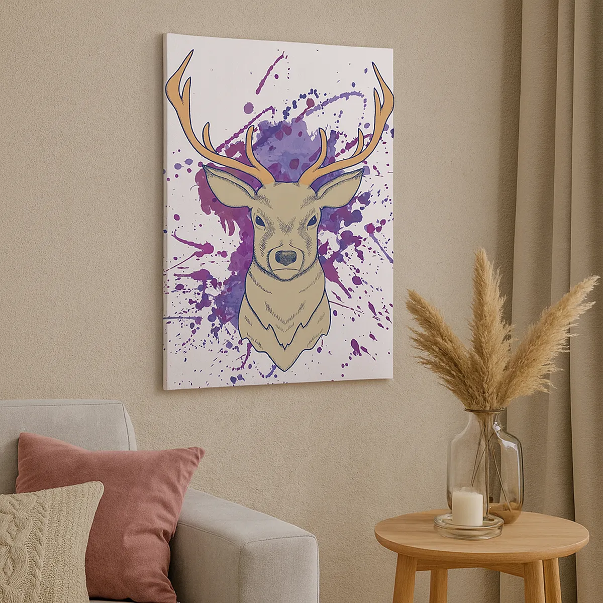 Bild auf Leinwand - Leinwandbild - Porträt eines Hirsches mit abstrakten Flecken im Hintergrund - 70x100cm - Mut und Ausgeglichenheit - Moderne Wanddekoration für Wohnzimmer und Schlafzimmer ARTTOR