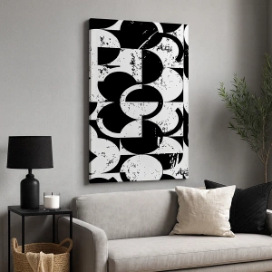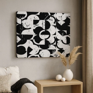 Bild auf Leinwand - Leinwandbild - Abstraktes schwarz-weißes geometrisches Muster mit Vintage-Effekt - 80x120cm - Weiß ist weiß und schwarz ist schwarz - Moderne Wanddekoration für Wohnzimmer und Schlafzimmer ARTTOR