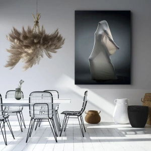 Bild auf Leinwand - Leinwandbild - Eine Figur aus weißem Stoff auf dunklem Hintergrund - 70x100cm - Versteckte Wünsche - Moderne Wanddekoration für Wohnzimmer und Schlafzimmer ARTTOR