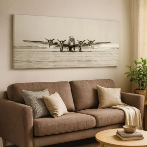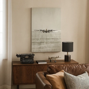 Bild auf Leinwand - Leinwandbild - Historisches Flugzeug auf dem Flughafen in Sepia - 50x70cm - Wie immer bereit - Moderne Wanddekoration für Wohnzimmer und Schlafzimmer ARTTOR