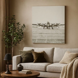 Bild auf Leinwand - Leinwandbild - Historisches Flugzeug auf dem Flughafen in Sepia - 80x120cm - Wie immer bereit - Moderne Wanddekoration für Wohnzimmer und Schlafzimmer ARTTOR