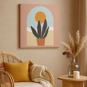 Bild auf Leinwand - Leinwandbild - Eine schwarze Pflanze in einem Topf gegen die Sonne - 80x120cm - Kleine Freuden - Moderne Wanddekoration für Wohnzimmer und Schlafzimmer ARTTOR