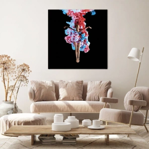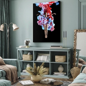 Bild auf Leinwand - Leinwandbild - Eine Tänzerin, umgeben von buntem Rauch auf schwarzem Hintergrund - 70x100cm - In voller Blüte - Moderne Wanddekoration für Wohnzimmer und Schlafzimmer ARTTOR