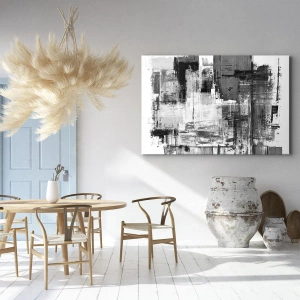 Bild auf Leinwand - Leinwandbild - Abstrakte Komposition in Schwarz, Weiß und Grau - 100x70cm - Wunderschönes Grau - Moderne Wanddekoration für Wohnzimmer und Schlafzimmer ARTTOR