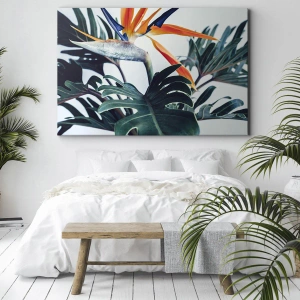 Die Leinwand wird über den Rahmen gespannt. Die Seiten und Kanten werden gedruckt, um das Bild fortzusetzen. Das Bild ist fertig zum Aufhängen an der Wand. Jedes Produkt hat einen am Rahmen befestigten Anhänger und ein Montageset (Schraube + Stift).