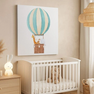 Bild auf Leinwand - Leinwandbild - Ein Ballon mit süßen Tieren in Pastellfarben - 120x80cm - Fantastische Reise - Moderne Wanddekoration für Wohnzimmer und Schlafzimmer ARTTOR