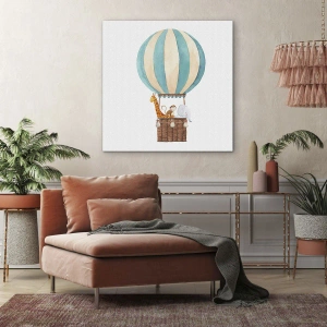 Bild auf Leinwand - Leinwandbild - Ein Ballon mit süßen Tieren in Pastellfarben - 70x100cm - Fantastische Reise - Moderne Wanddekoration für Wohnzimmer und Schlafzimmer ARTTOR
