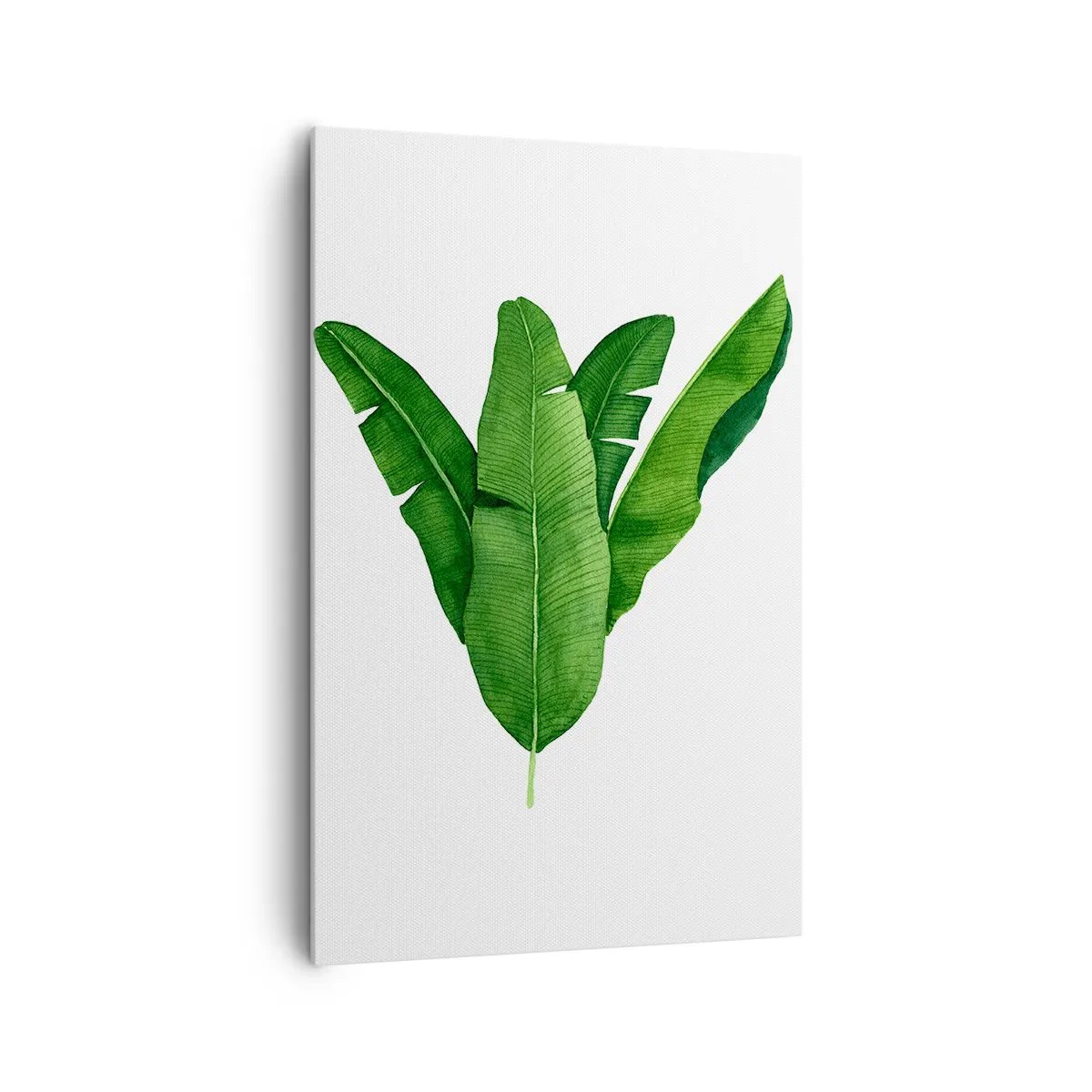 Bild auf Leinwand - Leinwandbild - Drei Bananenblätter in künstlerischer Umsetzung - 80x120cm - Grüne Symmetrie - Moderne Wanddekoration für Wohnzimmer und Schlafzimmer ARTTOR