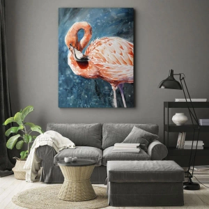 Die Leinwand wird über den Rahmen gespannt. Die Seiten und Kanten werden gedruckt, um das Bild fortzusetzen. Das Bild ist fertig zum Aufhängen an der Wand. Jedes Produkt hat einen am Rahmen befestigten Anhänger und ein Montageset (Schraube + Stift).
