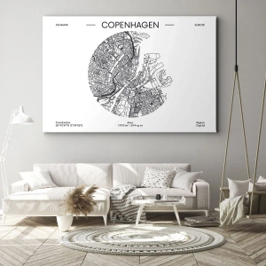 Bild auf Leinwand - Leinwandbild - Eine Karte von Kopenhagen im minimalistischen Schwarz-Weiß-Stil. - 100x70cm - Anatomie von Kopenhagen - Moderne Wanddekoration für Wohnzimmer und Schlafzimmer ARTTOR