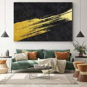 Bild auf Leinwand - Leinwandbild - Schwarzer Hintergrund mit dynamischen goldenen Pinselstrichen - 70x100cm - Sprung in den Hyperraum - Moderne Wanddekoration für Wohnzimmer und Schlafzimmer ARTTOR