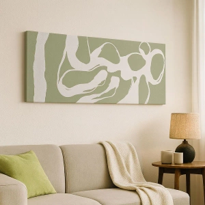 Bild auf Leinwand - Leinwandbild - Organische Formen in Weiß auf grünem Hintergrund - 100x70cm - Ruf des Weltraums - Moderne Wanddekoration für Wohnzimmer und Schlafzimmer ARTTOR