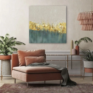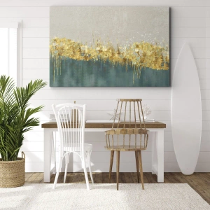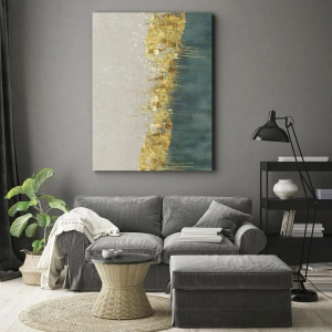 Bild auf Leinwand - Leinwandbild - Goldene Akzente auf grün-beigem Untergrund - 160x50cm - Goldener Rand - Moderne Wanddekoration für Wohnzimmer und Schlafzimmer ARTTOR