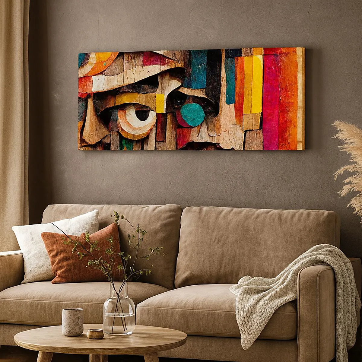 Bild auf Leinwand - Leinwandbild - Abstrakte Gesichter in intensiven Farben - 140x50cm - Ich sehe dich… - Moderne Wanddekoration für Wohnzimmer und Schlafzimmer ARTTOR