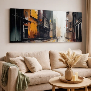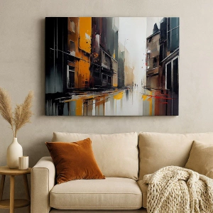 Bild auf Leinwand - Leinwandbild - Abstrakte Ansicht einer Stadtstraße im Regen - 50x70cm - Regnerischer Tag - Moderne Wanddekoration für Wohnzimmer und Schlafzimmer ARTTOR