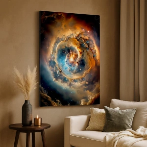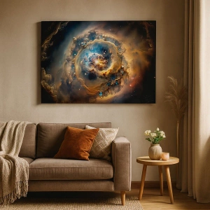 Bild auf Leinwand - Leinwandbild - Eine abstrakte Vision einer kosmischen Explosion in Gold- und Blautönen. - 100x70cm - Anfang - Moderne Wanddekoration für Wohnzimmer und Schlafzimmer ARTTOR