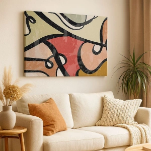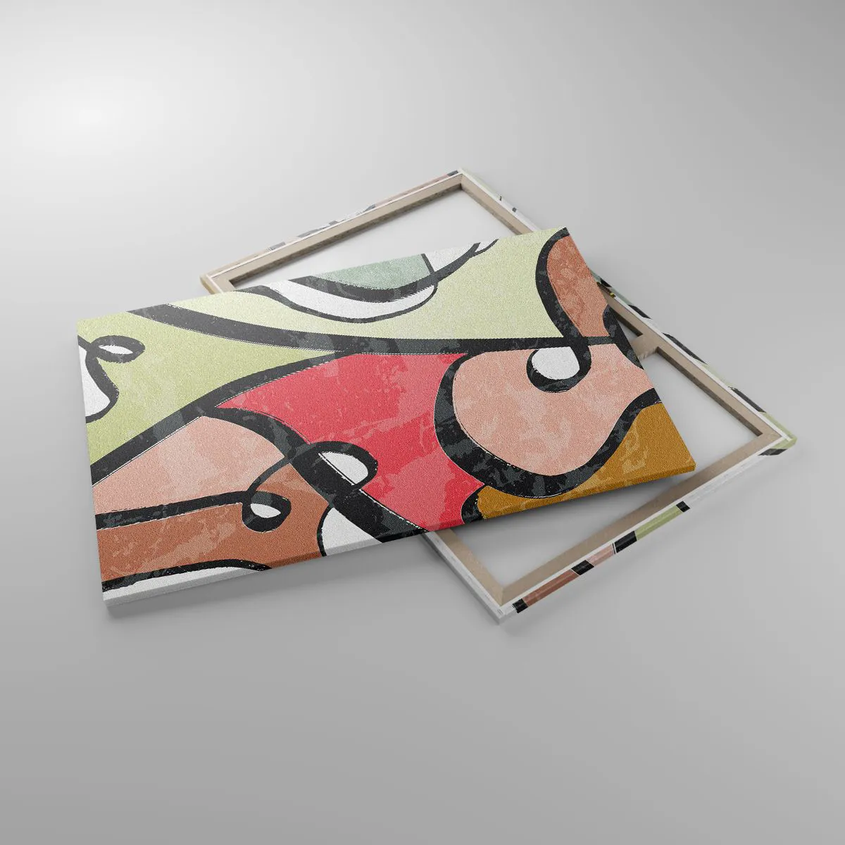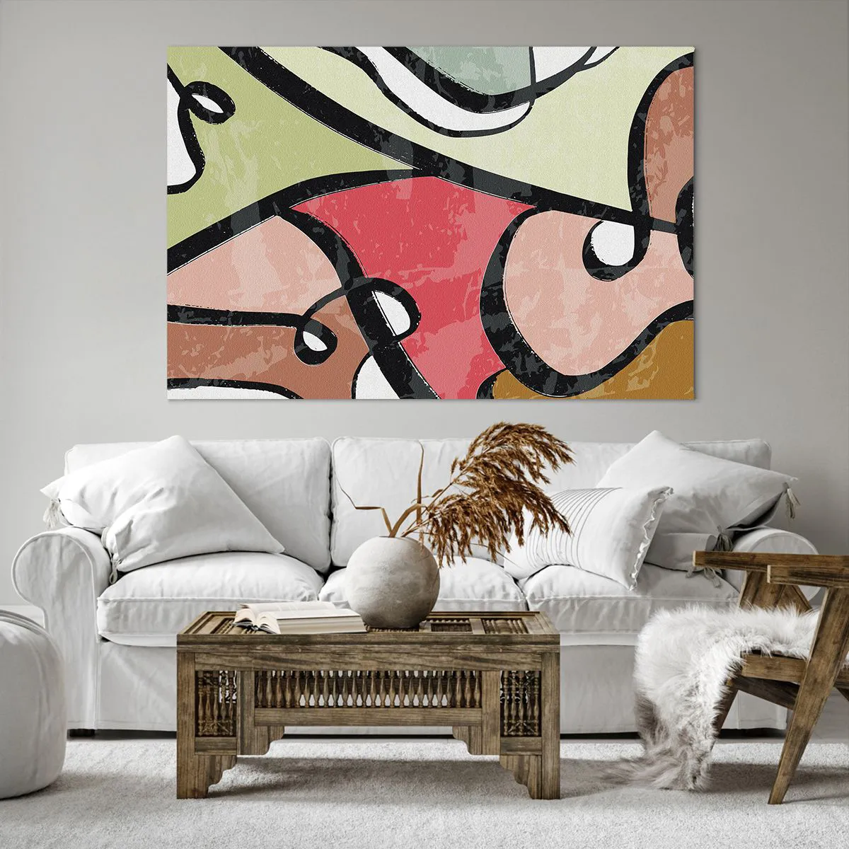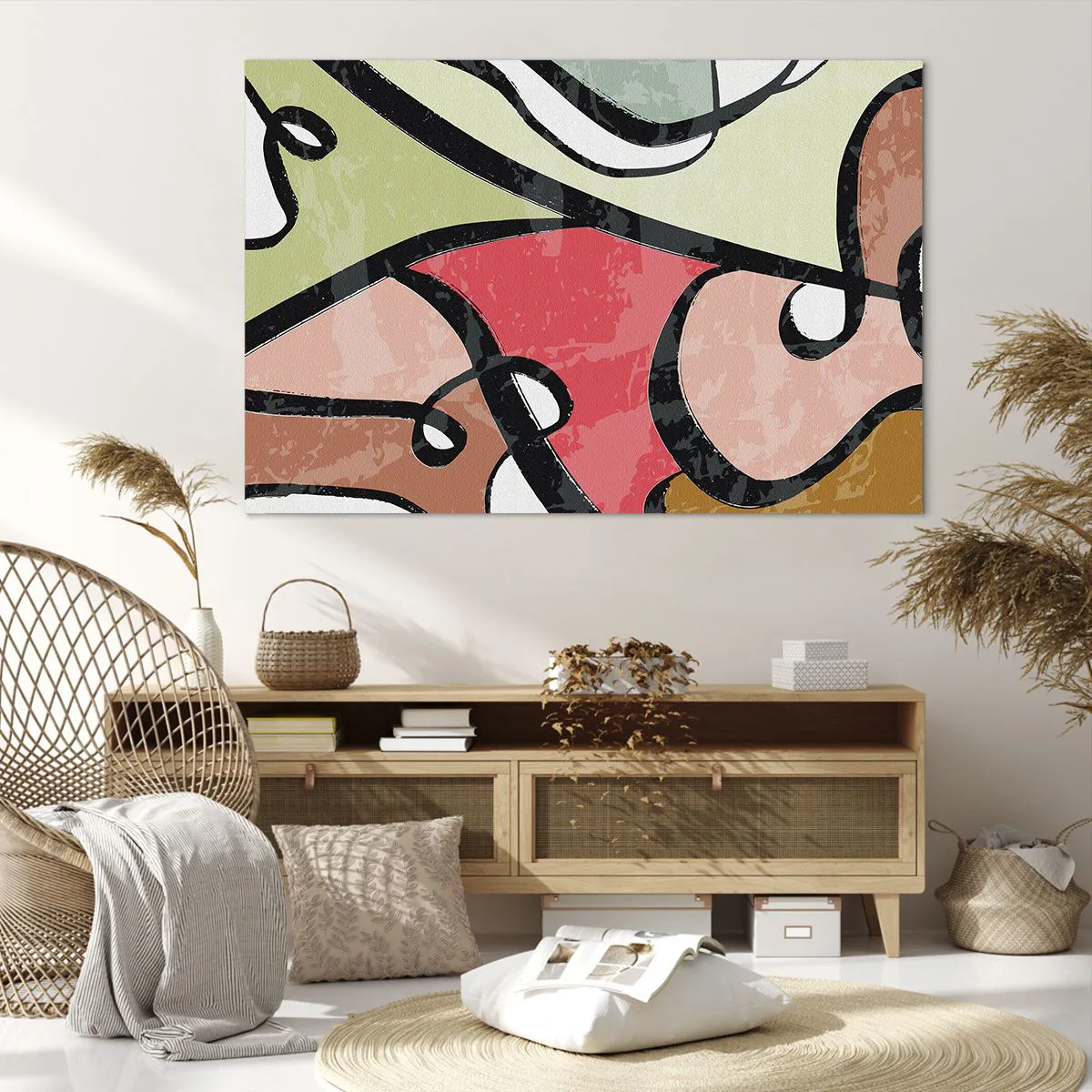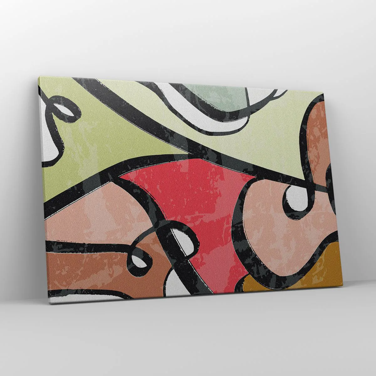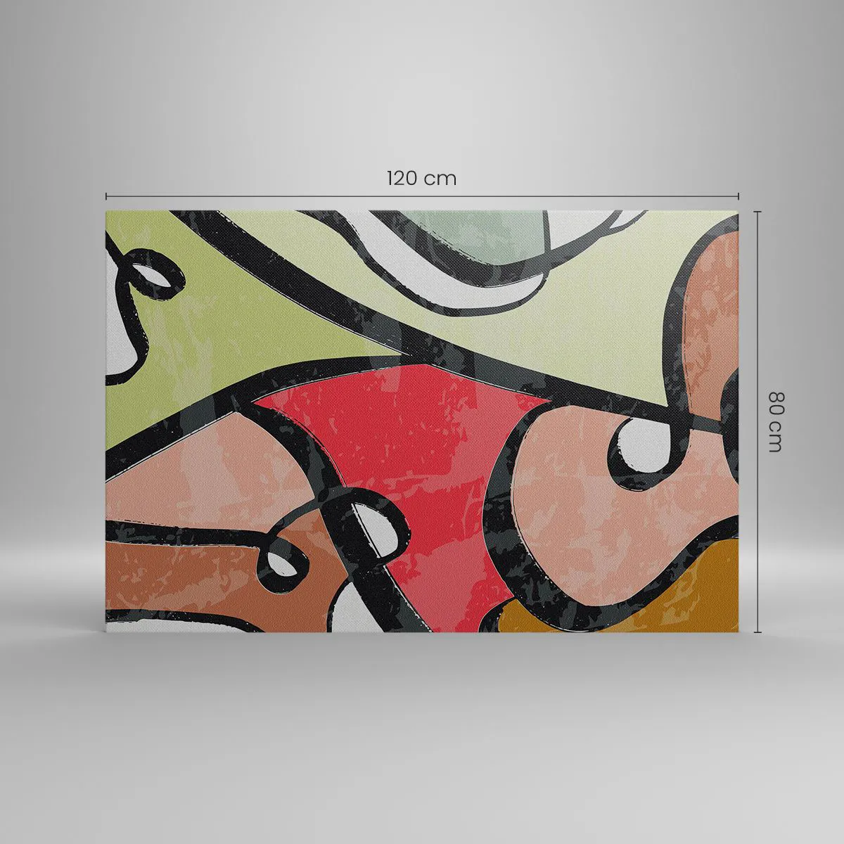Bild auf Leinwand - Leinwandbild - Bunte abstrakte Formen mit schwarzen Linien - 120x80cm - Pirouetten unter Farben - Moderne Wanddekoration für Wohnzimmer und Schlafzimmer ARTTOR