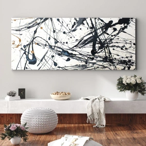 Bild auf Leinwand - Leinwandbild - Ein abstraktes Gemälde mit Farbspritzern in dynamischen Mustern. - 80x120cm - Expressionistische Abstraktion - Moderne Wanddekoration für Wohnzimmer und Schlafzimmer ARTTOR
