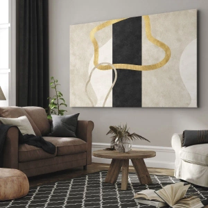 Bild auf Leinwand - Leinwandbild - Ein minimalistisches Design mit geschwungenen Formen in Gold und Schwarz. - 160x50cm - Schleifenformen - Moderne Wanddekoration für Wohnzimmer und Schlafzimmer ARTTOR
