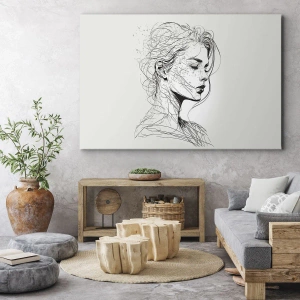Bild auf Leinwand - Leinwandbild - Ein zartes Frauenporträt im minimalistischen Grafikstil. - 80x120cm - Porträt im Gedanken - Moderne Wanddekoration für Wohnzimmer und Schlafzimmer ARTTOR