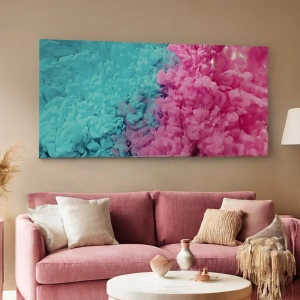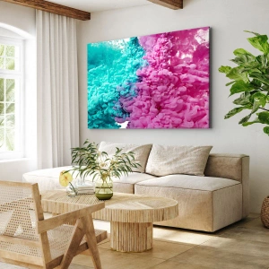 Bild auf Leinwand - Leinwandbild - Bunte Wellen aus Türkis und Pink in abstrakter Form - 120x80cm - Letzte Begegnung - Moderne Wanddekoration für Wohnzimmer und Schlafzimmer ARTTOR
