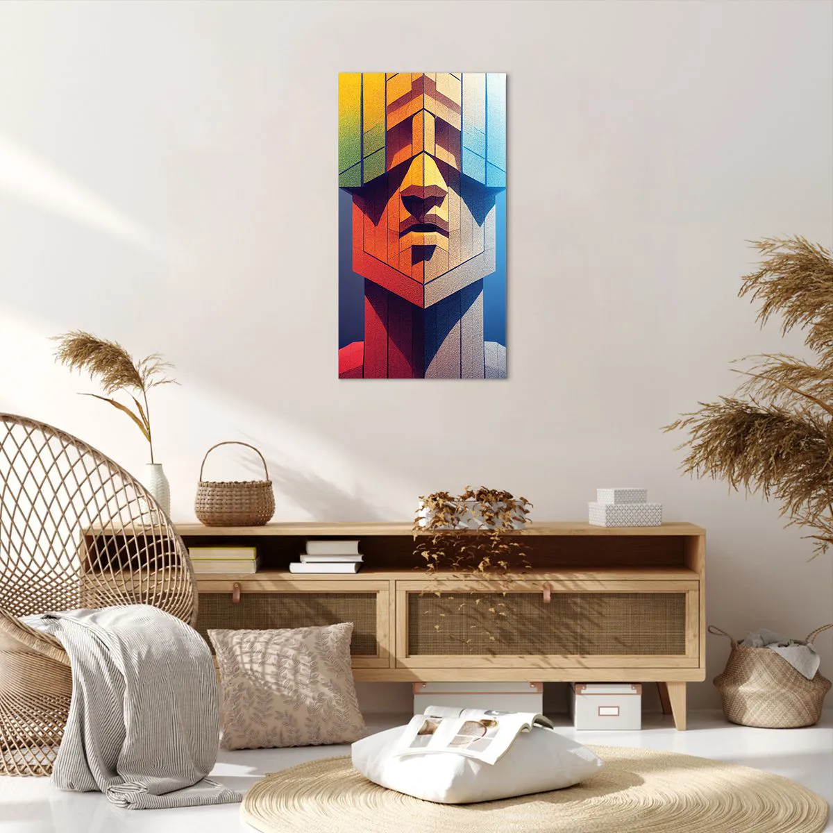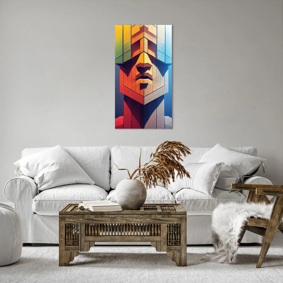 • Kopf, Konzept, Geometrisch, Abstrakte Kunst, Für das Büro, für das Arbeitszimmer, für das Esszimmer, für den Flur, für das Wohnzimmer, für das Schlafzimmer, Rot, Blau, Gelb, Vertikal