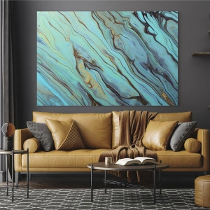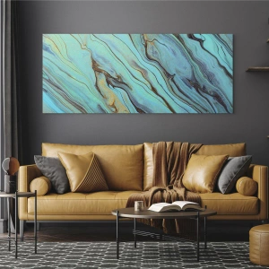 Glasbild - Bild auf glas - Abstrakte Streifen in Türkis und Gold - 120x80cm - Türkisfarbene Flut - Moderne Wanddekoration für Wohnzimmer und Schlafzimmer ARTTOR