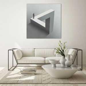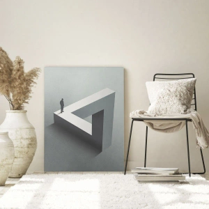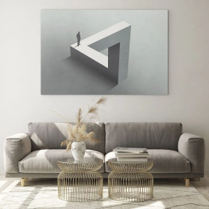 Glasbild - Bild auf glas - Eine Figur auf einer geometrischen Struktur im Stil einer optischen Täuschung - 50x70cm - Es ist also doch möglich - Moderne Wanddekoration für Wohnzimmer und Schlafzimmer ARTTOR