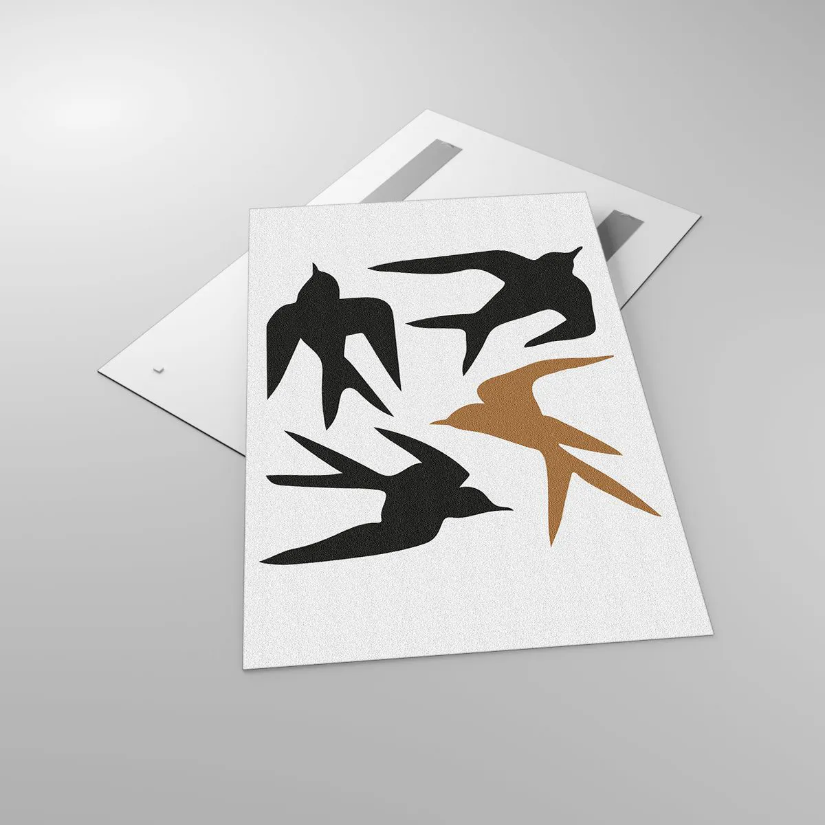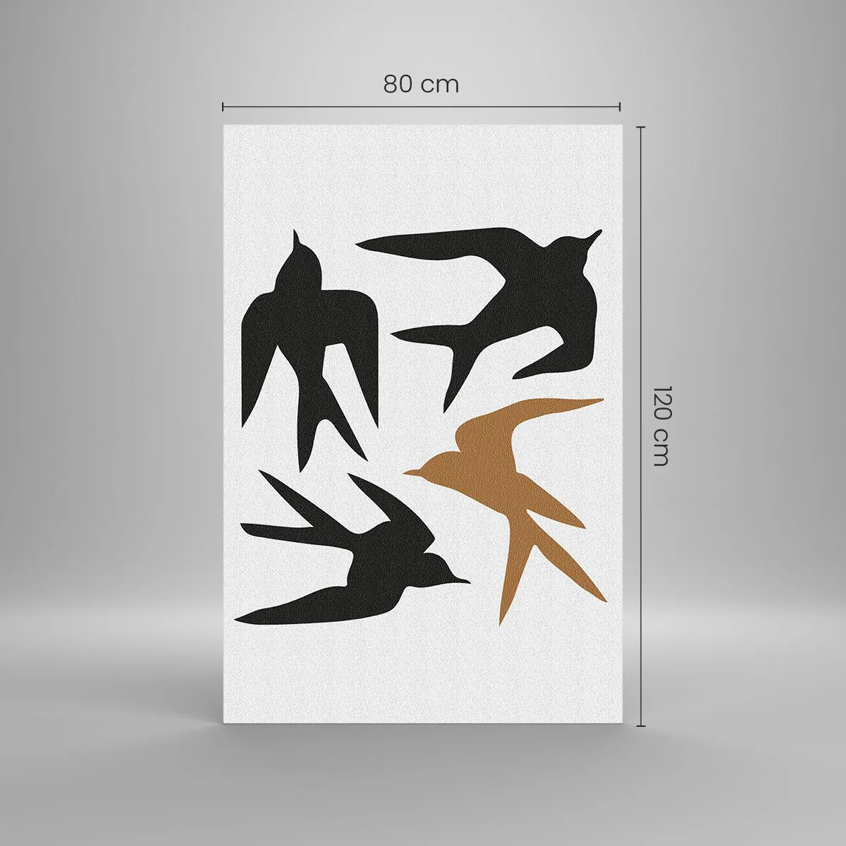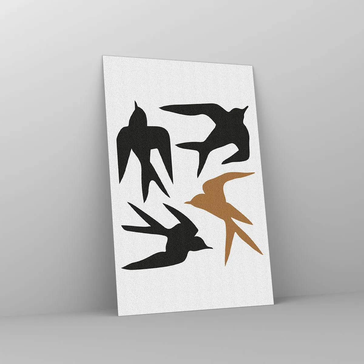 Glasbild - Bild auf glas - Silhouetten von Schwalben in Schwarz und Gold - 80x120cm - Schwalbenspaß - Moderne Wanddekoration für Wohnzimmer und Schlafzimmer ARTTOR