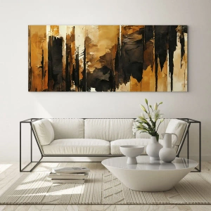 Glasbild - Bild auf glas - Abstrakte goldene und schwarze Streifen in einer künstlerischen Komposition - 80x120cm - Harmonie von Schwarz und Gold - Moderne Wanddekoration für Wohnzimmer und Schlafzimmer ARTTOR